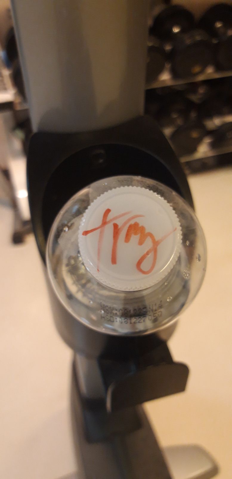 Quan sát thấy có chai nước uống chưa hết bỏ lại phòng tập gym .Nhắc nhở anh em nhớ uống hết để tránh lãng phí + nộp phạt |