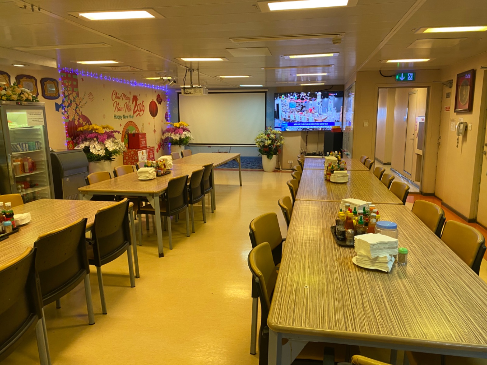 2057 2026-02-11 Pham Van Binh Có ai đó ngồi ăn cơm xem ti vi xong,lúc rời đi sau cùng không tắt ti vi mà để ti vi vậy.xin nhắc nhở anh em khi không sử dụng ti vi xin tắt trước lúc rời đi xin cảm ơn PSV Catering Operations Nhà ăn Ngày Unsafe Image