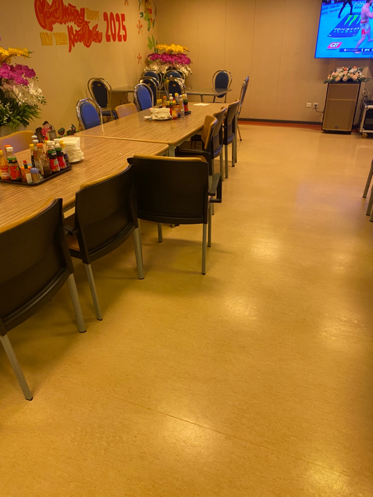Có ai đó ngồi xem ti vi xong lúc đi ko đẩy ghế vào gọn giàng. Xin nhắc nhở anh em ngồi ghế xong đẩy ghế vào ngay ngắn. Xin cảm ơn |